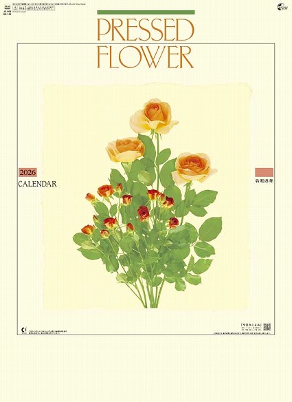 押し花をあしらった上品な印象のカレンダー!1ヶ月表示カレンダー、環境にやさしいミシン目の入りのエコプレス製本(ホットメルト製本)。QRコードから毎日読める「今日のこよみ」・押し花の説明・六曜を掲載。