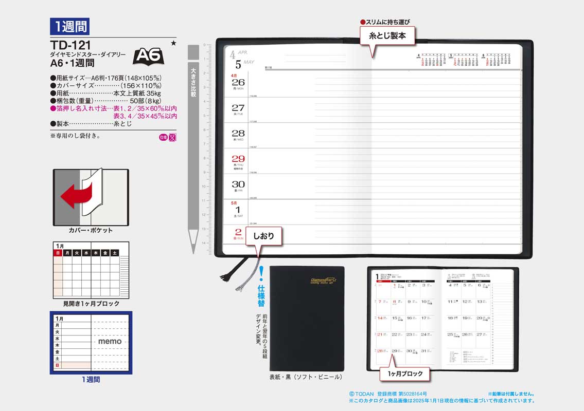 ダイヤモンドスター・ダイアリー A6・1週間(白) / TD-121カタログ