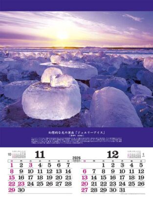 季節や天気、時間などの条件が揃った時にだけ見られる「奇跡の瞬間」、めったに出会えない「奇跡の絶景」を厳選。絵柄部分にフィルム素材を使用することで、紙では表現できない透明感のある美しさを実現。絶景の解説文、「令和・平成・昭和」の元号・前後月カレンダー・六曜・二十四節気・雑節・旧暦・三りんぼうを掲載。