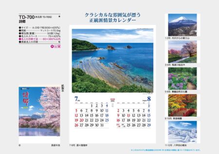 クラシカルな雰囲気が漂う、正統派の情景カレンダー。「令和・平成・昭和」の元号・六曜・二十四節気・雑節・旧暦を掲載。